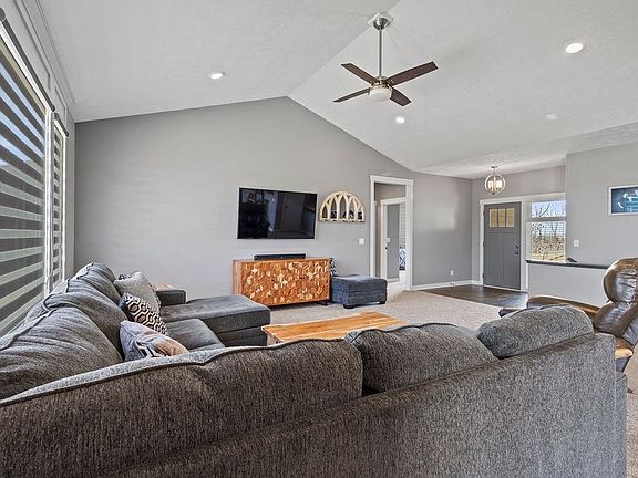 Welcome home to the desirable Meadow Ridge Subdivision! This beautiful 5 bedroom, 3 bath home has it all! The great room features vaulted ceilings and large windows. The dining area includes beams to accent the ceiling, wood floors and doors leading to the patio. Expansive kitchen with large island, granite tops, tile backsplash, walk in pantry and S/S appliances. Large mudroom with drop zone off kitchen with cubbies and desk area and attached laundry room. The primary suite features a walk-in tiled shower, double sinks & huge walk-in closet. The finished basement has large space for entertaining, 3 additional bedrooms and bath. Enjoy the beautiful yard with custom landscaping with concrete edging, patio and firepit. Radon mitigation system, shed and garage exterior door with side fencing were added in 2020. Call for your showing today!