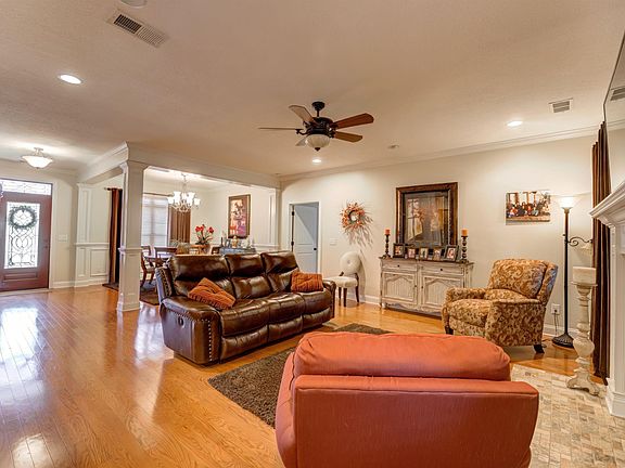 Move in Ready 4 BR 3.5 BA plus office. Large bedrooms. 2 bedrooms down. 2 up plus office. Large sunroom. Master has 2 walk in closets, 2 sep vanities, walk in tile shower. Custom kit with granite tops, gas cooktop and double ovens. Oversized garage ; tankless hotwater heater 2022; roof 2022. Spray foam insulation on interior walls helps with lowering utilities. Drive your golf cart to the golf course just mins down the road. Absolutely move in ready.