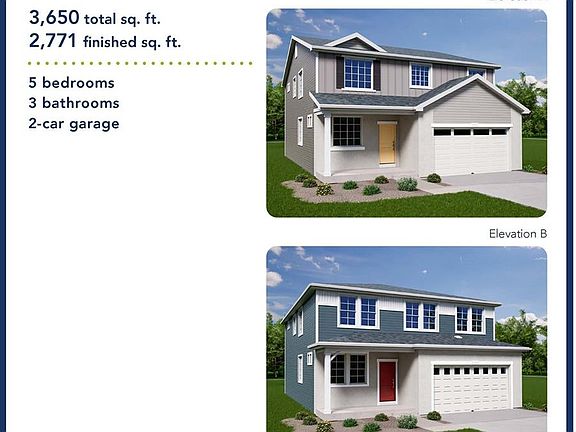 This single-family home spans 2,771 sq. ft. and offers 5 beds, 3 baths, 2-car garage and a partial unfinished basement. Step inside this captivating home and be greeted by a grand foyer that sets the tone for the expansive main level. The main level features a flex room - a versatile space that can be tailored to suit your every need. Whether you envision a dedicated home office, a vibrant playroom for the kids, or a serene haven for your favorite hobbies, the possibilities are endless. Entertain guests with ease in the elegant dining space, indulge in your culinary passions in the well-appointed kitchen featuring a large eat-in island and walk-in pantry. Imagine yourself relaxing in the great room, sipping coffee as sunlight streams in. Or entertain guests with ease, as the open layout encourages mingling and conversation. But the true gem lies in the main level bedroom and bathroom with a dedicated owners' entry. The primary suite is a true oasis, where you can unwind and rejuvenate in a space that exudes sophistication. Imagine the convenience of having a bathroom with dual vanities, allowing you and your partner to get ready in comfort, or the satisfaction of a walk-in closet that keeps your wardrobe impeccably organized. Upstairs you will find three generously sized bedrooms, giving everyone in the family their own private retreat. The laundry room is located near the bedrooms which makes chores a breeze. The guest bathroom's dual sinks ensure hassle-free mornings as you and your loved ones get ready for the day ahead. This home's bonus room is the ultimate game-changer. Indulge in your passions, host unforgettable gatherings, or create a serene personal retreat - the choice is yours.