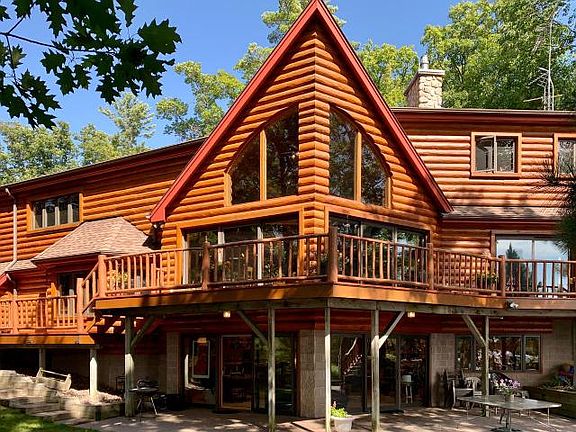 This stunning log home on pristine, crystal clear Plum Lake is nestled on a private 2.7 acre wooded parcel on the north shore with gorgeous views, sandy swimming frontage & sunshine all day! This property has it all...dry heated boathouse, 4 car att gar, and 4 car det garage. An open great rm with vaulted log-beamed ceiling, fieldstone fireplace & a wall of windows greets you as you enter this cozy northwoods retreat. A mn lvl lakeside master en suite with lg WIC, bathrm, & fireplace. The kit has a breakfast bar & walk-in pantry. Mn level laundry rm and reading nook. Gentle lake breezes will entice you to the screened porch on lazy summer days. Half log steps lead you to the upper lvl where you'll find 3 spacious bedrms, 2 full baths, bonus rm, & a wonderful office. The walk-out lower level features a spacious wet bar, family rm with fireplace, guest suite, sauna & huge mud rm. You've found your Northwoods paradise on Plum Lake in is quality built and beautifully designed home.