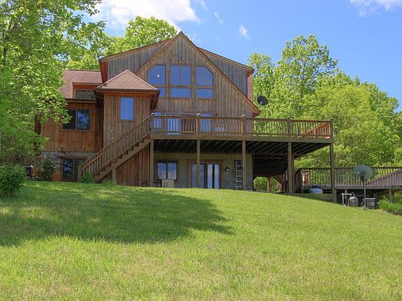 First time offered. This listing offers a perfect getaway with spectacular mountain views of the Blue Ridge. Set privately away from everything, this contemporary boasts a heated pool, full house generator, Anderson windows, an oversized two car garage with 10 foot ceilings and heated office, and a huge fireplace made with Luck Stone from Charlottesville. The wrap around deck gives the most unbelievable views - perfect for entertaining. There is a retractable awning to provide shade. Open floor plan with massive windows and lots of light. Two possible master bedrooms on each level. Over 25 acres of prime land with 5 acres cleared. Pool liner replaced in 2016, water heater replaced in 2016, septic rerouted and pumped in 2016, washer and dryer replaced in 2015. Only 2 miles to the Blue Ridge Parkway! Too many other details to list - please see list of improvements in doc box. Gas station, store, restaurant, and ATM only 5 miles away.
