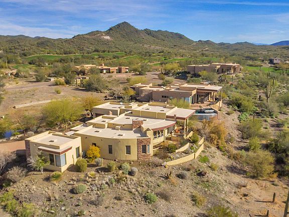 SIGNIFICANT PRICE REDUCTION*This home in QUINTERO encapsulates the essence of ARIZONA LUXURY LIFESTYLE*From the moment you enter, you have BREATH-TAKING VIEWS of BOTH MOUNTAINS and the GOLF COURSE through your wall of PICTURE WINDOWS*TRULY the best of BOTH words*Upgrades include TRAVERTINE flooring, fabulous BRICK WORK, GOURMET KITCHEN with GAS COOKTOP and BUILT IN FRIDGE, WET BAR at great room, and CUSTOM CABINETS at OFFICE*Oversized OWNER SUIT has SEPARATE EXIT that leads to the gorgeous FLAGSTONE PATIO*All bedrooms are ENSUITE*You will have an additional CASITA of 375 sq. ft. to provide privacy to guests**METICULOUSLY MAINTAINED, PRICELESS VIEWS, for the AMAZING VALUE*COME AND SEE WHY THIS TRULY IS A PLACE TO CALL 'HOME'