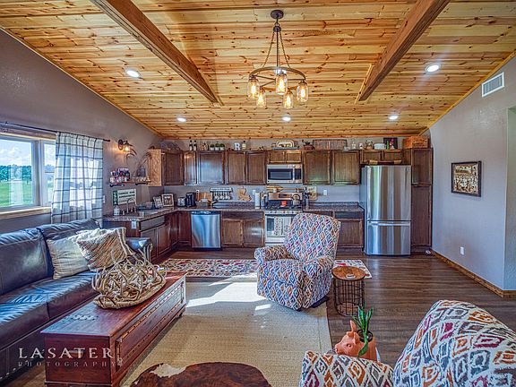 Stunning 2 bed 2 bath apartment with the most beautiful vaulted wood ceiling that maximizes every inch of space perfectly. It's built inside a 100 X 75 ft barn with concrete floors and 4 overhead doors on approximately 2 acres less than 5 miles from town. With a barn of this size, there is plenty of room to add more square footage to the living quarters or save all the extra space for storage. Also listed with 54 acres mls#144267.