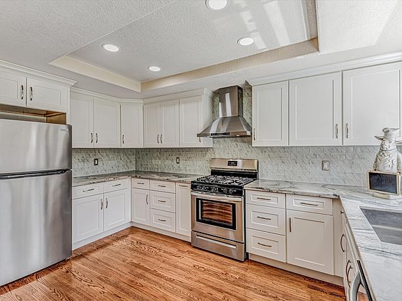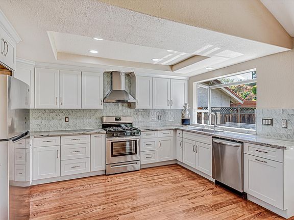 The heart of the home is the beautifully updated kitchen, featuring marble countertops, subway tiles, and stainless steel appliances. Enjoy serene hilly views as you cook or entertain in this modern, stylish space.