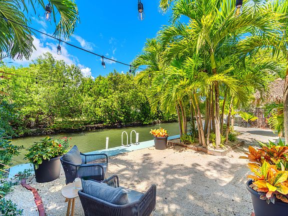 Escape to peace and tranquility in this beautifully furnished single-family home, located at the very end of Big Pine Key in the desirable Port Pine Heights community. Nestled on the edge of the Key Deer Refuge, this turnkey 3-bedroom, 2-bath home offers a serene natural setting with excellent access to the Gulf. The property features canal frontage with a 50 ft. concrete dock, tiki hut, and expansive downstairs storage perfect for boating equipment and outdoor gear. Inside, the open-concept living and dining areas are furnished with all-new, professionally curated furniture, and include updated appliances such as a new refrigerator, washer, and dryer. The master suite enjoys sunset views from a private porch, the guest bedroom is styled in soft coastal blue tones, and the third bedroom is currently designed as an office. Outdoor living is equally inviting, with a spacious porch overlooking the canal and breathtaking sunsets, as well as a garden dining area outfitted with teak furnishings and glowing market lights. Sold fully furnished and move-in ready, this home is the perfect choice whether you're a local family seeking your island residence or looking for a turnkey vacation retreat in the Florida Keys.