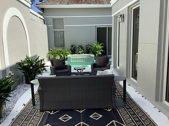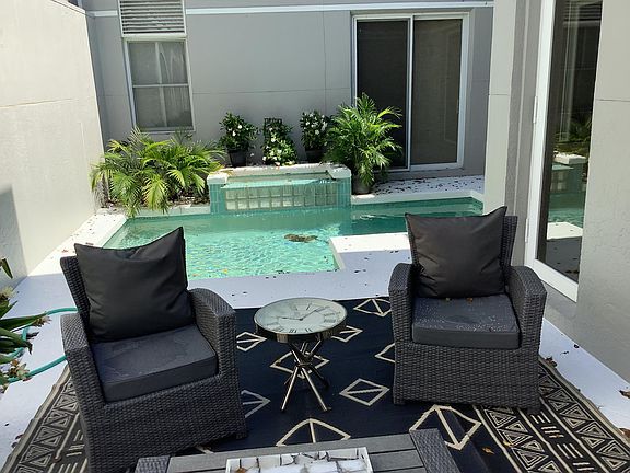 Beautiful one of a kind courtyard pool townhome with lots of upgrades. Sunny and bright. This 3 bedroom, 2.1 bath home with a 1st floor master suite is located directly across from the park. Superb layout which is different from the other standard models in Cambridge Park. Features a great room and a family room. Updated kitchen with stainless steel appliances. Newer washer and dryer. 2-car Garage.