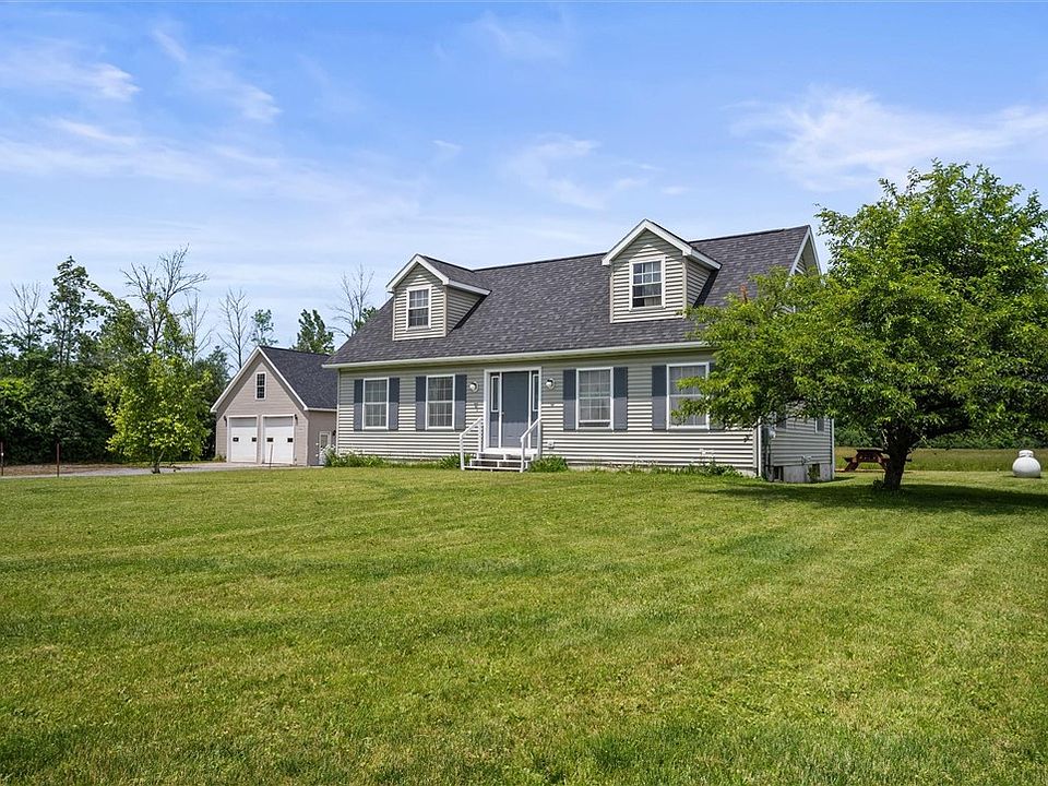 This cape is only minutes from Canandaigua on a quiet country road. Two bedrooms and a full bath on the first floor. Second floor awaits your finishing. It has been roughed in for another bedroom and full bath. The dry, partially finished basement also has the potential for an additional bedroom. Detached from the home is a 1200 sq ft garage/workshop. It is insulated, heated and has running water. Previously used as a auto detail shop. 3 overhead doors and a finished second floor for storage or entertaining. If you are a hobbyist, wood worker, or looking to establish a home business this property is a "must see'". Open house Sunday June 30th 2-4pm.