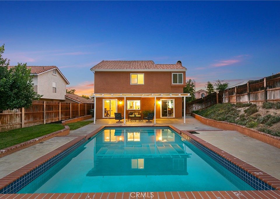 Remodeled Temecula Pool Home! Located on a sunny suburban street, this 3 Beds / 2.5 Baths, 1458 Sq Ft property offers both a family-focussed & modern layout with refreshed features to match. Travel up the front porch past the new dual-pane bay window overlooking well-manicured flower beds. Once inside, follow the chic dove grey laminate floors into the living room & notice the two-story ceilings showering the entry with natural light. Continue past the spacious living room into the kitchen's sliding glass access to the backyard built for tranquil gatherings with family & friends. The multi-level patio stretches from the covered patio area surveying the masonry-coping pool stretching to the far end of the backyard where the raised patio section seats another group of loved ones. Back inside, trek the mod stairs to the second level where the distinctive layout of each bedroom welcomes a seamless flow of sunlight & a lofty feel that overlooks the first floor. The addition of the plantation shutters and curtain allows versatility to use the open space as a loft or 4th bedroom. Reset & relax in the master bedroom where sliding glass closet doors reflect the brightness of the large picture window & the updated dual-sink vanity offers space to pamper yourself in style. Additional bedrooms each feature a new dual-pane window & modern light fixtures, plus a full bathroom with a stylish updated vanity. Addtn'l features include: attached 2-car garage with fresh white automatic door, powder room, Spanish tile roof, fresh paint, new windows, minutes from Temecula shopping & nature reserves, I-215, I-15, Award-Winning Temecula Schools.