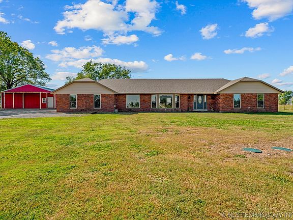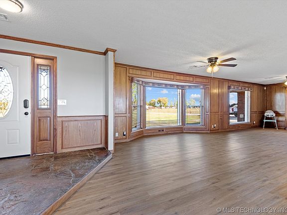 Home on 5 acres m/l, permitted for livestock! Beautiful 4 Bedroom, 2 Bathroom home with new flooring in 2022 and 2023. An updated large kitchen with large island with electric. Livingroom has a wall of built in shelving and storage. New roof in 2018. New Aerobic system in 2021. New Fixtures and paint in 2023. New interior paint in 2023. Newer ceiling fans, dishwasher, garbage disposal. Refrigerator is 2 years old. Home features an open floor plan with lots of storage throughout. Detached oversized garage & shop. Shop 30x50 is insulated with electric. Convenient location just North of Dewey.