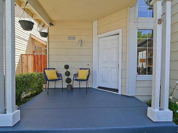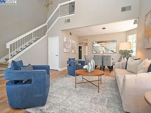 Welcome to your stunning new residence, where modern elegance meets convenience. Step inside to discover a home transformed by meticulous upgrades, featuring a remodeled kitchen with quartz countertops, Scandinavian oak cabinets, and new stainless-steel appliances. New laminate floors span the first level, and a downstairs bedroom is perfect for guests or in-laws. The renovated downstairs bathroom includes tile bath surrounds, tile wainscoting, high-end tile flooring, and a sleek vanity with quartz countertops. Upstairs, new Berber carpets lead to two bedrooms, including the primary suite with a remodeled ensuite. The primary bath boasts a designer tile walk-in shower, a stylish vanity with quartz countertops, and elegant tile flooring. Select rooms feature LED recessed lighting, and a modern chandelier enhances the dining area. The backyard offers a paved patio, ideal for relaxing or entertaining. Conveniently located near Newpark Mall, Pacific Commons, I-880, Community Park, and the neighborhood pool.