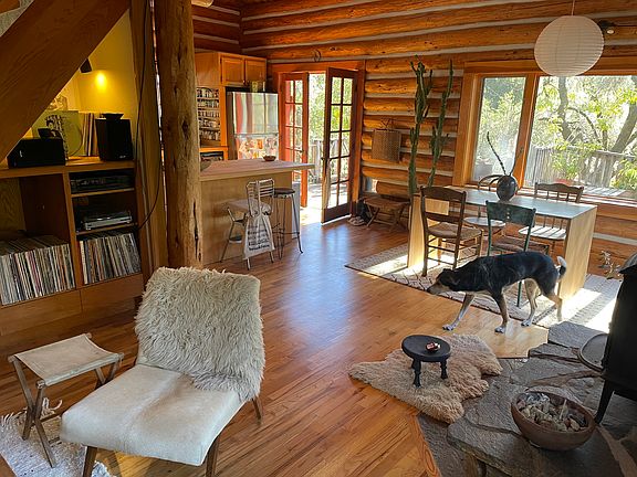 Unique property, adorable log cabin; 800 square feet with loft giving it a much bigger feel, one bedroom with a "bonus" room (office, sitting area), large bathroom, open concept kitchen, dining and living area with wood burning stove for heat. New appliances in kitchen; including convection oven. It has a new Trex deck and has been recently painted. Small shed has a washer and dryer (clothesline outside shed) and some storage area and a fenced yard. Situated off the road on 2 1/2 acres, property is shared with owners home with large space between home for parking. Approximately 7- 10 minutes from downtown Santa Cruz and easy commute to San Jose, via Vine Hill to Highway 17. Not a short term rental, one year lease preferable will safeguard the rent for a year. Water and sewer are included, Electricity is the responsibility of the renter. Garbage and internet are shared with owner.