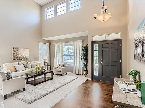 PRICE REDUCED $20,000. Stylish, 4-bed/3-bath home with main floor study. Light and bright with neutral palette throughout. Two-story entry. Formal living/dining rooms. Kitchen with slab granite counters & breakfast bar open to family room. Stainless steel appliances, including gas stove and newer refrigerator (2021). Main level office with built-ins. French doors for work-from-home privacy. Upstairs, primary suite with 5-piece bath (luxury vinyl tile, slab granite counters, tile tub/shower surround), and walk-in closet. Three secondary bedrooms up. (Seller will remove storage cabinets in upstairs bedroom to accommodate bed. Cabinets sit on carpet and can be easily removed.) Full bath and upstairs laundry on the second floor. Fully permitted basement (2012) with rough-in for bath adjacent to exercise area. Plenty of storage. Shelving in basement storage area, all TV mounts and security cameras stay. Hardwoods on the main; newer carpet. Radon mitigation system. Stamped concrete patio and custom-built crescent firepit lounge. New exterior paint (Oct 2023). New roof coming (2023), weather-permitting, or seller will prepay roofer. Central air. 2-car garage with new door. Garage refrigerator included. Great neighborhood; close to so many services, hospitals, public/private high schools, etc. Easy access to C-470. HOA fee is $165/quarter offers free access to four state-of-the-art recreation centers, pools, trails, tennis, etc. Most HOA docs available at: www.hrcaonline.org! Great home. See it today.