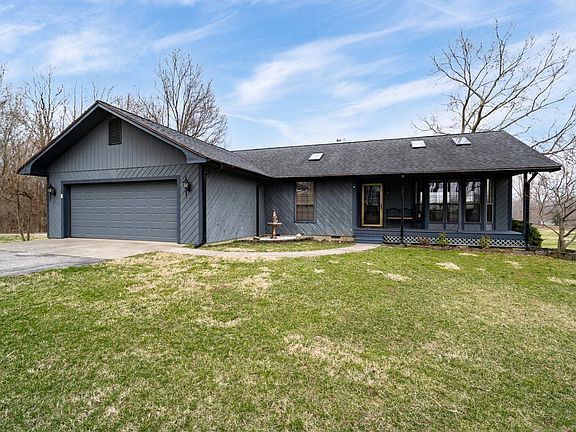 Custom Built 1 Owner! 1,419 sq ft Sits back from road. Great room w/cathedral ceiling/2 skylights. Kitchen offers counter bar & vaulted ceiling. SS appliances,Stove '21, Dishwasher '18.Kitchen opens to dining room w/bay window and Great Room. Owners suite w/in closet&adjoining bath.Fresh Paint Throughout. AC & Roof '14. Extra large 2 car garage w/brand new Door & pull down stairway. 27x38 detached garage w/concrete floor, electric&floor drain.Large Matching Shed 7 ft walk in crawl space. AS IS