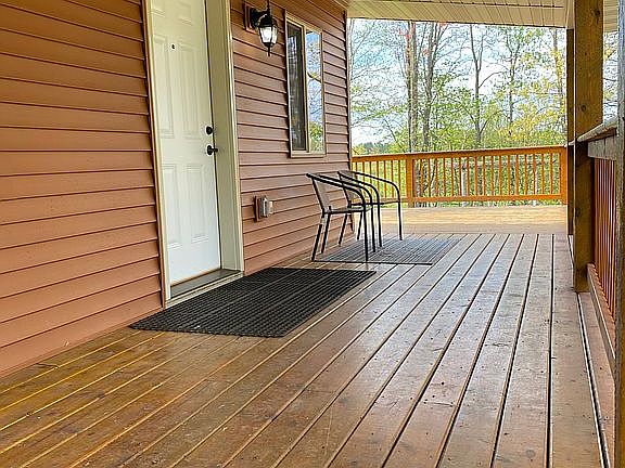 WILDLIFE/BIRD LOVERS PARADISE This nearly new home is very private, yet near Eagle River and all its amenities. Home features hardwood floors, stainless steel appliances, wrap around porches/deck. Great room with large viewing windows and vaulted ceiling. Master bedroom on main level with walk-in closet and shower, second bedroom in walk-out lower level with shower/tub combination. Oversized one-car garage offers extra high door and 10’ interior ceiling. Over six acres featuring a spring fed pond and room to enjoy the Northwoods. Across from Rade Lake offering canoeing, kayaking and fishing. Low off-the-water taxes. Hurry, this property won’t last long. Call 715-570-7301 for appointment.