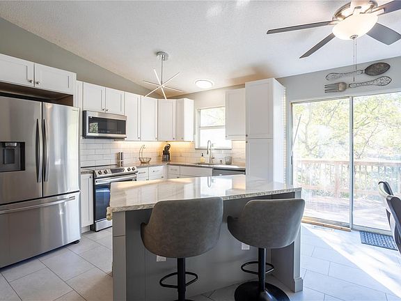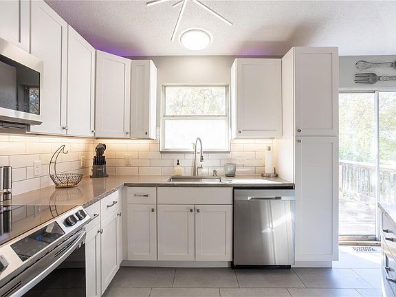 Need to find your next home in time for Christmas? Look no further! This split foyer not only is affordable and perfectly located in central Arnold, but it also has tons of fantastic updates! It starts with the STUNNING custom kitchen highlighted by quartz counters, white shaker cabinets, SMART stainless appliances, center island, a convenient "drop zone," sleek & modern light fixtures, undermount & accent lighting, and a large breakfast rm w/ access to the backyard deck. The open floorplan showcases vaulted ceilings, bay window in the great rm, modern paint colors, and luxury vinyl plank flooring which runs throughout the home. A fully updated bathrm w/ adult height vanity, lighted mirror, bluetooth speaker, tile surround & 6' soaking tub/shower combo; a comfortably sized secondary bedrm, and primary bedrm both w/ ceiling fans & walk-in closets completes the main level. A finished lower level w/ rec space, storage & updated full bath; and a 1yo roof rounds out this gem!