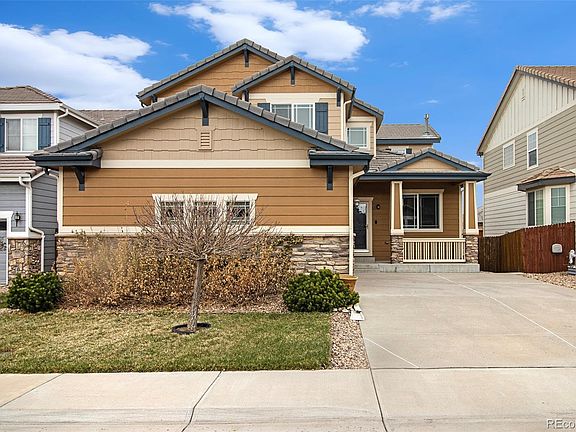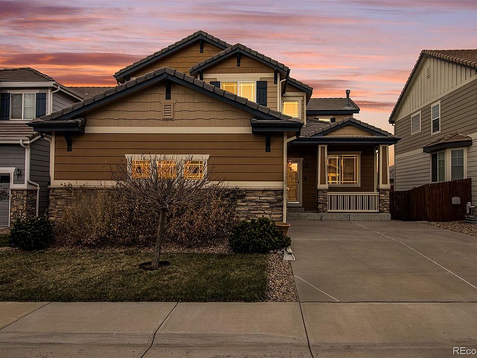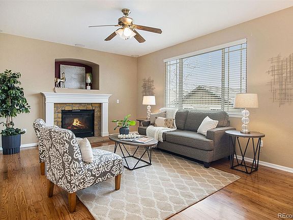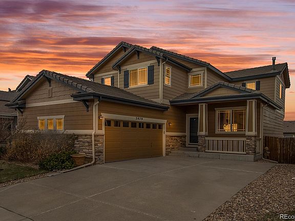 Between the back deck, mountain views, yard and the front porch, there is plenty of reason to stay outside, but the interior exerts its own gravitational pull. This charming contemporary is ideally situated in the Tallgrass neighborhood. Rear fencing of the carefully landscaped yard adds a pleasant seclusion to the enjoyment of these features. A breezy front porch is a structural greeting to passers-by, and is a nice spot for relaxing with family or neighbors. Rewards also await on the other side of the Welcome mat. The impressive entryway is a fitting introduction to a home that includes hardwood flooring (entryway, living areas, and kitchen), stylish lighting, large windows allowing beautiful sunlight in, neutral colors, open floor plan, remarkable ceilings (vaulted and tray), and a gas fireplace in the living room. The kitchen is in the popular island configuration, maximizing workspace and flexibility. The layout includes premium appliances, pantry and high end cabinetry. The den on the main floor features built in shelving. Upstairs, the ensuite primary bedroom is a great place to start and end the day featuring two walk in closets. The private bathroom includes a separate tub. Three other bedrooms and laundry all rich with closet space, are found upstairs and ready to be personalized by some lucky new owner. An oversized garage makes unloading the groceries easy and provides ample place for a workbench, exercise equipment or toys. Only a stone's throw from parks and open spaces, local shopping/dining spots, and award winning Cherry Creek schools, the home also offers a breathtaking view of Front Range- soak in the Colorado sunsets! Come tour this home in the popular Tallgrass development, where the low-traffic streets are lined with trees and sidewalks. Out front, the driveway has ample room for visitors' parking. Vibrant market, prime listing, schedule a showing today! This impeccable home will welcome you!