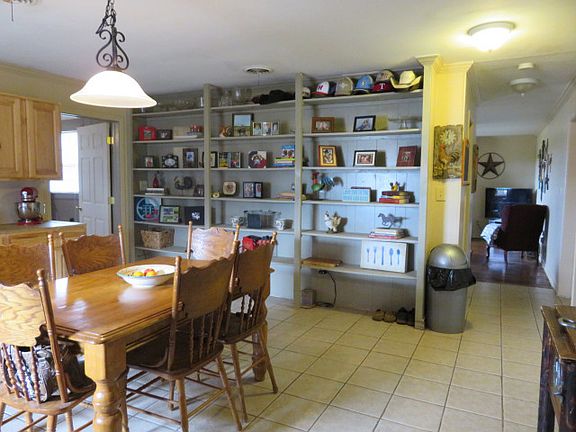 Adorable farm home on 10.38 acres with a barn and 2 stock tanks! House is a 3/2/2 with 1527 square feet per ADO. Hardwood flooring plus fireplace in living room. Huge eat in kitchen with a wall of shelving. This is the heart of the home! 2 car detached garage. Barn with cement floor. Newer fence surrounding acreage. Some pipe fencing. Holliday schools. Freshly painted interior!