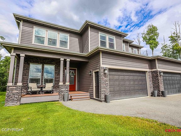 REMARKABLE 5-BEDROOM HOME plus an office! Gorgeous home in The Ridges, beautifully maintained and cared for. Exquisite attention to detail makes this a stand out property with 8' exterior and interior doors, 10' ceilings, stunning interior trim and finishes, a chef's kitchen with butlers pantry, double ovens and gas cooktop, each bedroom has it's own bathroom, and don't overlook the 4-car garage!Additional features: Wood burning fireplace, and large supply of split wood Formal dining area big enough for family gatherings Main level bedroom and 3/4 bath with walk-in shower Carpet only on the stairs Upper level flex room - work out, hang out, etc. Upstairs laundry room with laundry sink Bedrooms with access to second level deck Beautiful master suite Auto generator for winter emergencies Spacious back deck and back yard Large parking pad for RV's, boats, trailers, etc Close to Wasilla, Wasilla Airport, Menard Sports Complex Easy commute to Wasilla, Palmer or Anchorage Home Furnishings are negotiable!