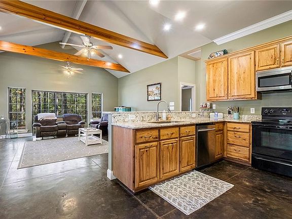 Nicely treed 8 acre parcel with 7 year old open concept home with 10 ft. ceilings throughout with 16 ft. ceiling in great room. Plenty of windows and sliding doors 3 bedroom with huge main bedroom, and two large bedrooms. Attached oversized 1 car garage and great front porch. Custom cabinets and granite counters throughout. VERY energy efficient.