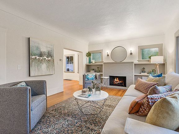 Opportunity is knocking in Rockridge. Let your imagination run wild in this large bungalow-style residence with over 3,000 square feet of living space! An excellent floorplan offers five bedrooms, four bathrooms, basement space, plus a detached two-car garage and a private patio. The interiors are comfortable now, allowing you time to plan your vision of a dream home. Perched above the street on a sunny corner lot, this lovely private home beams with natural light as you flow through the living room, formal dining room and large eat-in kitchen. Two bedrooms and a full-sized bathroom complete the first floor. Upstairs, there is a large owner's suite awaiting with a walk-in closet, bonus closet and an ensuite bath featuring a dual sink vanity, shower over tub and plenty of storage. Two other bedrooms with ample closet space, a full bath reside on this level. One bedroom even has a private deck overlooking the backyard offering sunset views. Recently refreshed yet still teeming with character, the home boasts new carpet, refinished hardwood floors throughout and a brick fireplace with builtin bookshelves in the living room. A great bonus/flex space can be found in the large, partially finished basement and comes with a separate entrance, perfect for a possible ADU or Junior ADU conversion. (Buyer to verify with the City.) Beyond the residence itself, a wonderful outdoor space awaits with established landscaping, including a fig ttree, grape vines and rosemary plants. An oversized detached two-car garage and a driveway provide enough space to accommodate up to four cars off the street gives this property extra appeal. The location is unbeatable in the heart of Rockridge on the Berkeley Border. With a Walk Score of 93, you are just steps from Colby Park, Rockridge BART station, the new Rockridge Safeway marketplace and all the shops and restaurants on College Avenue, including Wood Tavern, Cole Coffee, La Farine, Barney's, Zachary's, Market Hall, etc. Don't let this one get away!