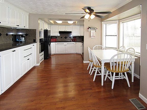 Wonderful home w/ a lot to offer! Back on market at no fault of seller or home. Buyer backed out due to financing, got financing then backed out for personal reason. In Thurston neighborhood w/ view of distant mountain tops. Heat pump, granite tile counters, ash hardwood flrs, tile flr, 2 bay windows, lots of storage space & natural light. LIV rm w/ wood-burning fireplace, large FAM rm w/ pellet stove, KIT w/ under-cabinet lights & dining area. Master BR w/ 2 closets plus bath. RV parking, workbench in garage, deck, fire pit, fenced yard, veggie garden & 2 sheds.