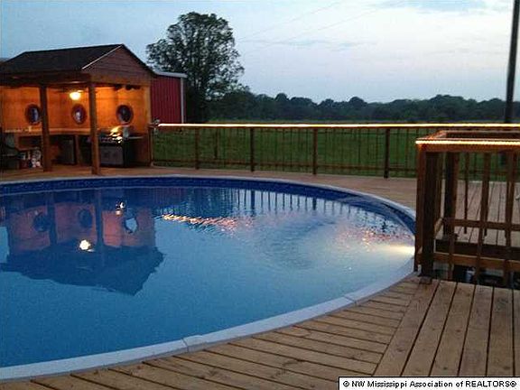 PRICE REDUCED! Multiple dwellings on 10 plus acres close to Sardis Lake and I-55. Property includes a 1592 sf home with 2 beds and 2 baths plus a 2015 single wide mobile home with 3 beds and 2 baths and a beautifully appointed 1200 sf metal office building. Main house completely remodeled in 2002, office bldg. new in 2007, wood deck across back of home built in 2012. Features include chain link fence for dogs in back, beautiful screened porch across the front of the house, partially covered deck in back; well kept above ground pool sunken with wood decking in 2012 including a small outdoor kitchen area; 3 carports with storm shelter underneath one of them, 32x38 barn, a 12x16 shed, stainless kitchen appliances, central heat and air, gas fireplace and so much more. Very unique, immaculate property in rural Panola County. Lots of open pastures for horses or farming. Don't miss out!