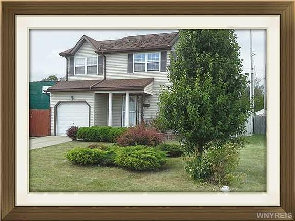 Vinyl Colonial minutes away from Downtown area & UB medical corridor * 3 nice size bdrms, 1.5 baths, liv rm w/cath ceiling leads to a petite formal din rm (chandelier stays) * Eat-in kit w/all appliances in place. Appliances all stay * Carpet & vinyl hrdwd flrs thru-out * Ample storage space thru-out * Deep lot for backyard entertainment, gardening (full fenced for privacy) * 2nd level loft overlooks liv rm area * * Custom window treatments stay * Extra space in basement for den, computer room * Make this your home for 2015! Seeing is buying!