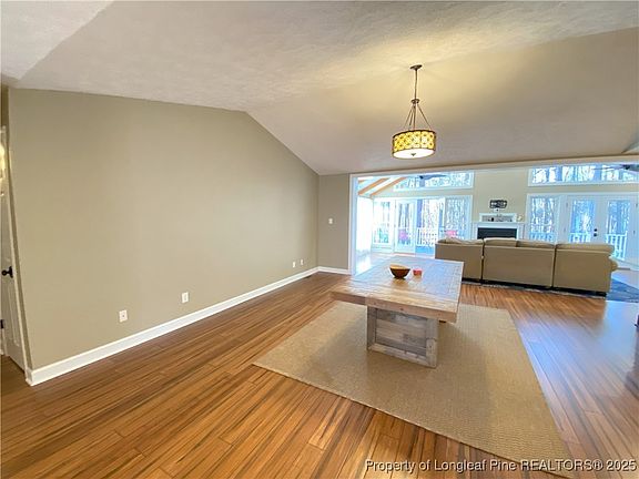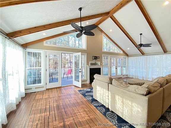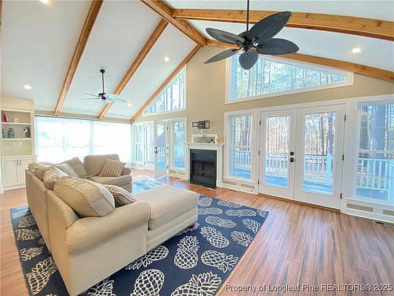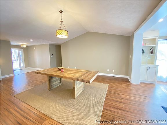 Beautiful Ranch home for rent in CAROLINA LAKES in Harnett County. This 3 Bedroom 2 bathroom updated home nestled on a wooded lot and features a double car garage, front porch, Large rear porch and ramp. Inside you will find open floor plan with Vaulted Ceilings and exposed wood beams. The updated kitchen and laundry room and bar area features: All new cabinets, center island. The kitchen has stainless steel appliances, Gas cooktop, wall oven, warmer, wine cooler and microwave. The living space has wood floors, vaulted ceiling, gas fireplace, built ins and access to the rear deck. Dining area, entry and bar area also has wood floors. 2 standard bedrooms with carpet. Owners suite with laminate plank floors, 2 closets, double vanity sink, set in shower, and more built ins. Carolina Lakes is a Guarded/Gated POA community with lake access, beach and marina, community pool, tennis, basketball and pickle ball courts. Sand volley ball court, Frisby golf, Community Playgrounds events and more. Deed restrictions apply.