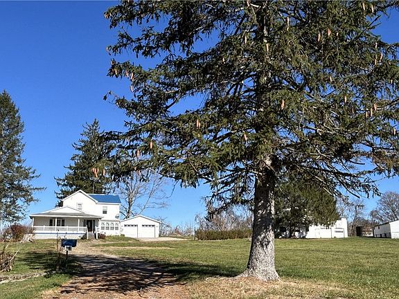 A home with a view. This farm house overlooks a valley full of nature. 7 rooms, Kitchen w/island and a breakfast nook with a sunset view. A library of convenience with a view east for the morning coffee while looking at the sunrise. Located at the edge of AEP close to wildlife and just a few miles from the convenience of town and necessary amenities. The home is 2 story with a full basement which has outside access, 4 bedrooms, 2 full baths, 1 half bath, a large family/gathering room for your family and friends. A dining area for get-togethers. Outside you have the convenience of a concrete drive to the 2.5 car garage, a walkway to the first workshop and 2 bay garage with storage above. The second workshop is a 2 story bank building with a work shop up stairs and work area and storage area downstairs, both levels have walk in doors with garage door access on bottom floor. At the rear of the home is a hand laid brick patio with a built in bench seat and a view you will admire. Winter, Spring Summer or fall, the views are beautiful. Nature at your door step. You DO NOT want to miss this timely updated home that offers you a piece of the past.