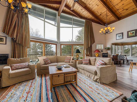 This spacious 5 bedroom home sits on just over an acre in an ideal location and is part of the QLLA. The house offers multi-level living with 2 bedrooms and a family room on the first floor and 3 bedrooms on the second. The second floor also boasts a large open kitchen and living room with wood burning fireplace. There are floor to ceiling windows allowing for an abundance of sunshine and lovely mountain views. Sliders open onto an oversized deck perfect for a morning coffee, relaxing in an adirondack, or enjoying a nice glass of wine. Around the corner from the kitchen is a window filled dining room that leads out to a covered porch and stairs to the back yard. The second floor also has a nice bar and sitting area nestled in among the bedrooms. Lastly, spiral stairs take you up to an amazing 840 sq. ft. loft and rec room offering plenty of hangout space for all ages. Outside, the yard is mostly open with some partial woods in the back. The property is part of a nice little neighborhood and is just a few minutes from the Quechee Club. Woodstock is 6 miles away and it is only 16 miles to Hanover. This is a perfect spot for a 2nd home getaway or primary residence.
