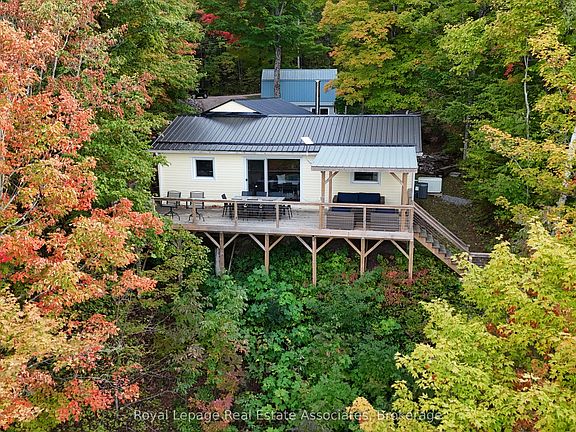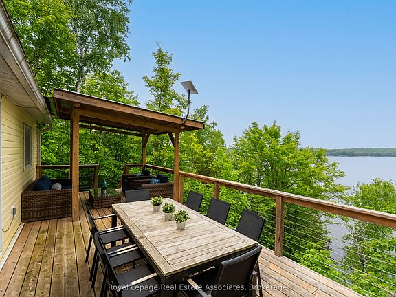 Thoughtfully updated, 3 Bedroom, 2 Bath, fully winterised, 4 Season Cottage with stunning views of Wollaston Lake. Whether swimming, paddling or boating from your 100' of clean, deep, private shore line or curled up next to the wood stove this lakeside home caters to all of your cottage country activities. Entertain guests in an open concept layout that offer views of the lake from the family room, kitchen, dining room and living room right out to the expansive deck. Featuring a dry boathouse to securely store all of your lakeside toys as well as a garage/workshop with a spacious loft above that is awaiting your imagination. When the day ends retreat to your luxurious primary suite, featuring a private ensuite with a spacious walk-in shower. Generac, automatic generator adds convenience and peace of mind for year round use. Hot Water Owned, Steel Roof (2024), HVAC Replaced 2021, Security Cameras, UpgradedOutdoor Lighting, Trex Decking on Permanent Portion of Dock.