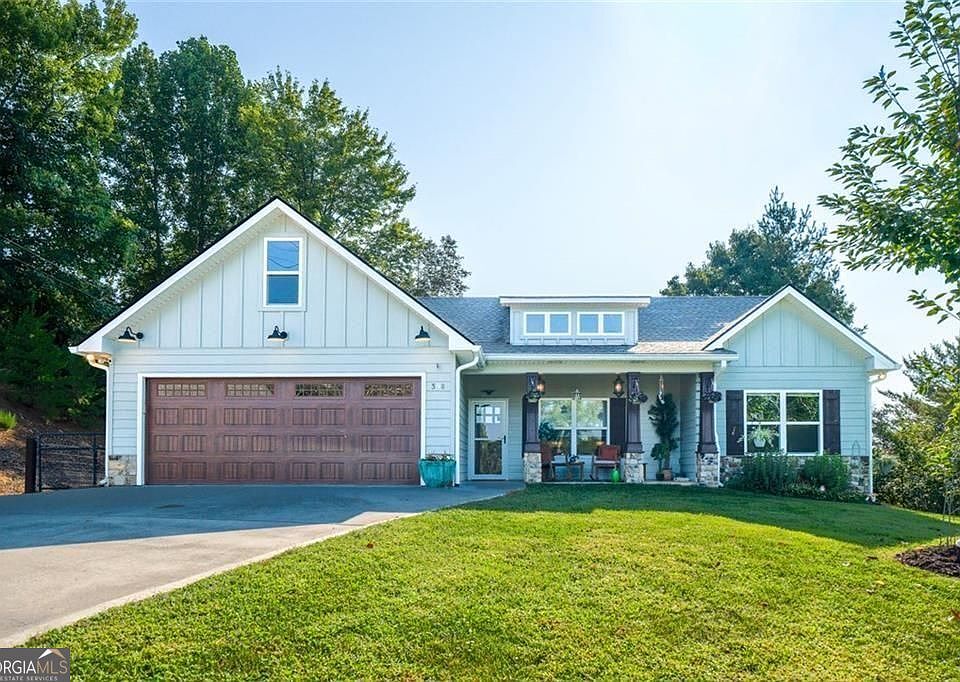 This stunning stepless ranch in Ellijay, GA is not just a home-it's the lifestyle you've been waiting for. Perfectly blending modern farmhouse elegance with warm, inviting comfort, this one-of-a-kind retreat sits within city limits yet offers seasonal mountain views and a peaceful, private setting-all just a short stroll to downtown. Step inside and fall in love with the open great room, where soaring T&G wood ceilings, a sleek electric fireplace, and sunlit walls create the ultimate backdrop for both everyday living and unforgettable entertaining. The chef's kitchen is a showstopper, featuring a stainless steel farm sink, crisp white cabinetry, a statement wood island, and vent hood-all designed to impress and inspire. Your luxurious master suite is its own sanctuary: custom-organized walk-in closet, spa-worthy bath with subway-tile shower, freestanding soaking tub, and a double vanity accented with timeless shiplap. Guests will feel pampered, too, with two serene bedrooms and a stylish full bath. Details matter-and this home has them all: a barn door laundry room, two-car garage, concrete driveway, level yard, and that picture-perfect covered porch made for morning coffee and evening wine with a view. Opportunities like this do not come twice. This is more than a home-it's the one you've been dreaming of. Schedule your showing today before someone else calls it theirs.