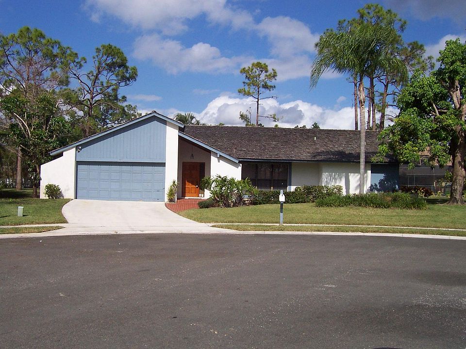 4/2.5/2 SFH Wellington POOL 2460 sf/ac LARGE yard. Four bedroom and two full bath one half bath 2460 square foot air conditioned; POOL; split plan; central air conditioning and heating (electric); carpeting and tile throughout; covered screened-in patio; quiet neighborhood near schools and two shopping centers with major grocery store (Publix), theaters, restaurants and shops and one regional mall; we are pet-friendly depending upon the pet;one year lease minimum; cathedral ceilings in living and dining areas; paddle fans; two-car garage; "NO SMOKING" RESTRICTION APPLIES. Lawn has automatic sprinkler on timer; sliding glass doors to patio; step-in Roman shower in master bathroom; large family room with dinette; prewired for cable. PLEASE NOTE: Home has just been returned to owner after a long-term rental. Therefore, extensive work is now beginning to return home to move-in ready condition. Some colors will be different from photos. Tenant pays all utilities incl garbage pickup. Unfurnished.