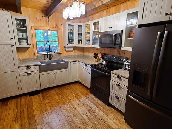 Perfectly situated on the south side directly across from Rec Area & extending to Long Beach Marina this double lot has it all. Raised level rustic yard with great trees, gravel lined Golf Cart path to the Marina and expertly hardscaped fire pit area, perfect for entertaining under string party lighting. 14X 20 shed holds all beach necessities dry along with a 2016 Yamaha 6-seater Golf Cart; included in the sale. Also included is a mooring, 2 kayaks, 2 SUP boards stored at Long Beach Racks. Built in 1986 and renovated in 2019, this Log Cabin perfectly blends rustic charm with modern living. Open floor plan with loft bed upstairs and 2 on Main. Completely remodeled kitchen and hardwood flooring throughout featuring high quality stainless steel appliances and fixtures. A large 12X24; screen porch provides additional space to enjoy mornings and evenings for meals, gaming and socializing. Additional features are new plumbing fixtures and ceiling fans throughout.