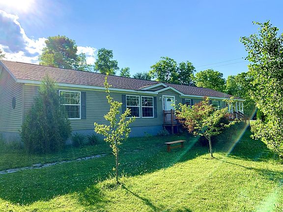 This very spacious 2008 ranch home features 4BR/2BA, a large master suite, two living rooms, a large corner lot (2+acres private wooded lot), new hot water heater, beautiful landscaping, the serenity of nature in your yard, and 3 storage sheds; one of which is workshop has a wood stove! Large chefs kitchen,stacked stone fire place Privacy and seclusion, yet only a few minutes from downtown Ithaca, CMC, and Trumansburg. Sellers willing to share home inspection done by Howell on Homes in March 2020. Ithaca address, Tburg School District.