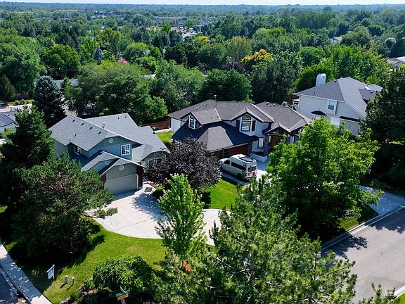 It's the perfect time of year for sky watching and this property sits on the ridge overlooking Eagle with sweeping views of the Boise Valley from Bogus Basin to the Owyhee Mountains. Abundant room with 2 large living spaces, one with a fireplace and a formal dining area. The inviting sunny kitchen with quartz counters, hardwood flooring and new stainless appliances will be a gathering spot. Large windows in all the main floor rooms bring the outside in. Upstairs is a spacious primary bedroom with a walk-in closet and bathroom with separate tub and shower and new tile flooring. 3 other bedrooms give you lots of options. The .34 acre lot has mature landscaping including 4 bountiful fruit trees. Patio with auto retractable awning and a 3 car garage with storage round out this wonderful property. Schedule your tour!