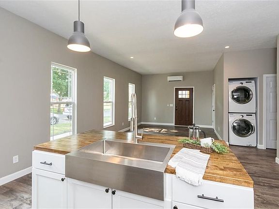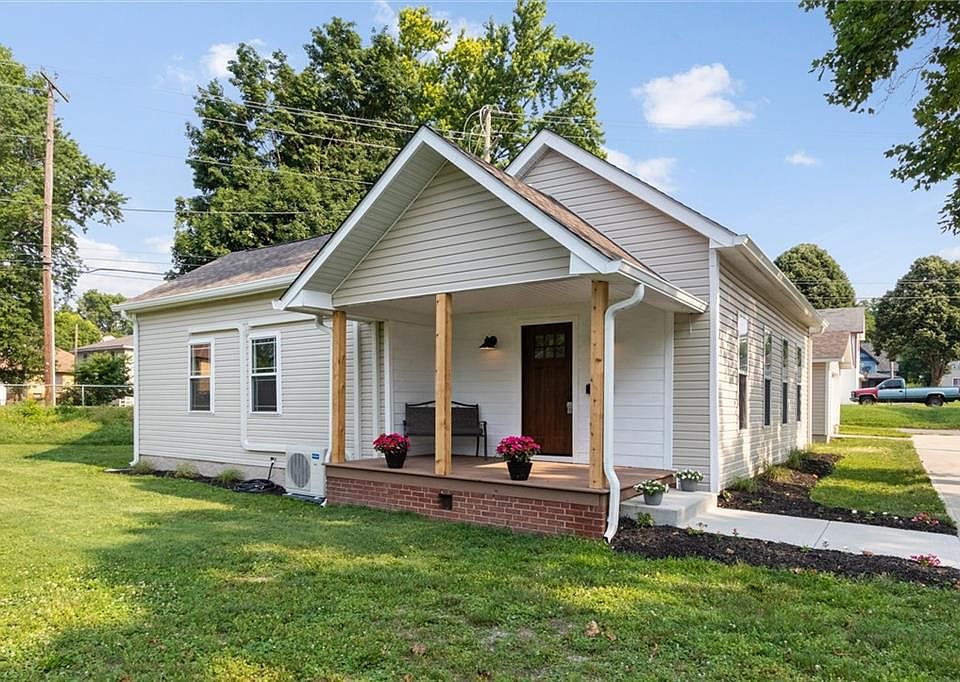 Beautiful COMPLETELY REMODELED Bungalow in Franklin! INSIDE IS ALL NEW from the stud on in. Enjoy 9' ceilings through-out, luxury vinyl plank flooring and a Nice open living room and kitchen area. Kitchen is all new & has a great custom hood cover for a center point. Butcher block counter tops and SS Appliances and a breakfast bar over hang too. ALL new bathroom. Home has a NEW HVAC system that is a split unit allowing separate temp. settings in the living area and in both bedrooms! Nice stackable washer & dryer included too. This home on the Exterior has all NEW Windows, Roof, gutters, siding & Exterior doors. Also a nice inviting covered front porch and a large 31x10 patio in back! All this on a large lot. Also a nice 1 car det. garage