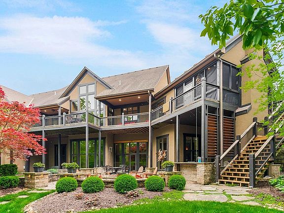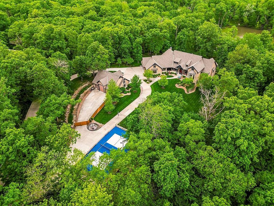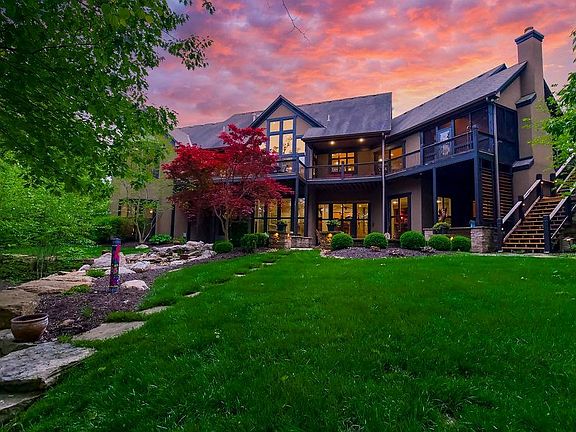 One of a KIND! Featured in FOUR magazines, this property boasts an abundance of amenities you've always desired: an outdoor oasis w/firepit & water views, private dock w/gazebo, fenced yard for pets, private pickleball court, detached garage w/2 workshops & 14' high ceiling w/hoist & a NEW 2,520 sq ft RV garage and guest house. Enter first through your own private automatic gate to the main home & feast your eyes on the gorgeous award-winning landscaping. Once inside, you'll be greeted by a stunning Great Room w/vaulted ceilings, a fireplace & gleaming hardwoods throughout the main floor. The Chef's kitchen is perfect for entertaining, complete w/a walk-in pantry, granite counters, stainless appliances & custom cabinets. The breakfast room & adjoining sitting room provide access to a screened porch w/another fireplace. The Master Suite exudes luxury w/private deck access, a sitting room w/a fireplace & a spa-like tiled bath featuring a whirlpool tub & a large shower w/dual shower heads & spacious walk-in closet w/built-ins! A second main level bedroom also features its own private bath & upstairs you will find an ideal library/office space. The main level laundry room offers a sink & ample storage. The downstairs 2 level space impresses w/a living area w/a fireplace, a wet bar, wine cellar, theatre & breathtaking views of the backyard patio oasis. 3 addl bedrooms w/private baths round out the home's interior. Enjoy your own pond w/aerators to keep the water clean, a swimming dock and gazebo. On the other side of the home, play pickleball or work on projects in the detached garage & workshops. The guest house, located outside the gate near the entrance to the cul-de-sac, offers large 14 x 14 garage doors for the 16' tall RV bays, multiple garages & a 1-bedroom, 1.1-bath suite for renting out or guests. RV bays rent for $500 each & apartment $1,300. That makes $2,300 a month income. OR can be used as a work/shop for a business! Call for list of all special features!