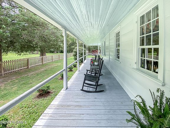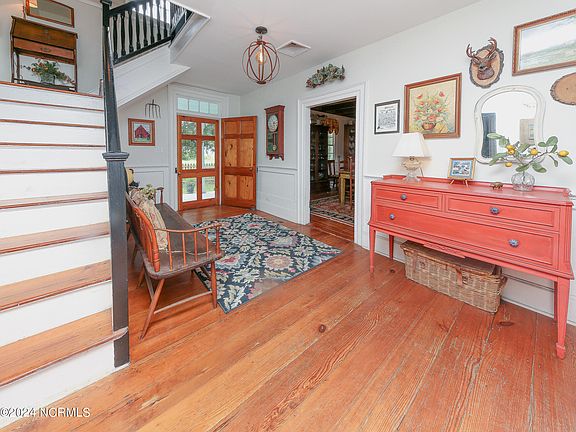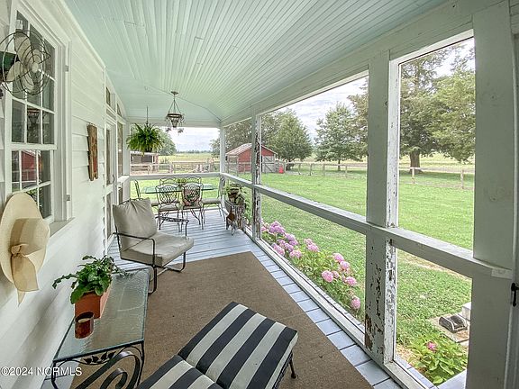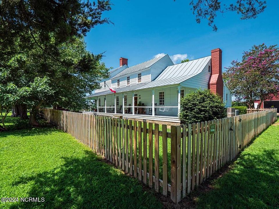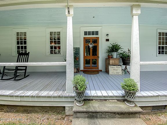 The Francis Nixon House, circa 1815, blends historical charm with modern amenities. This unique property combines three historic homes, fully restored in 2022, into an elegant residence that honors its past while providing contemporary comfort. Key Features: Historic Elements: Original handhewn ceiling beams, wood flooring, windows, fireplaces, mantles, farmhouse sinks, and claw foot tubs. Farmette Living: The 3.65-acre property accommodates goats, chickens, and ducks, making it perfect for animal lovers. Outdoor Enjoyment: A wrap-around porch and screened sunroom offer scenic views of the legendary Perquimans County sunsets. Gardens: Boxwoods from Monticello add a touch of historical significance to the landscape. Accommodations: The home features a primary suite on the first floor with a walk-in closet, and three additional bedrooms upstairs filled with natural light. Outdoor Conveniences: Includes a newly added outdoor shower (2024), fenced areas for animals, a duck pond, stable, and a large metal building for use as a garage, workshop, and storage. Location: Offers privacy while being close to Highway 17 for easy commutes to Historic Downtown Hertford, the waterfront, Virginia, and the Outer Banks. This home offers a perfect balance of historical significance and modern living, set in a serene and practical environment for both domestic and farm animals. Home can convey partially furnished with acceptable offer.