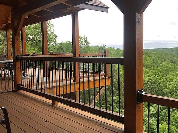 This one-of-a-kind, immaculate log home is situated near Big Spring National Park and the Ozark National Scenic Riverways. Located just a mile from the quaint town of Van Buren, Missouri and a mile from the Current River, this is truly a dream home! The home sits at the entrance (literally, a few hundred yards) to Big Spring National Park. Nearby are opportunities to fish, hunt, canoe, tube, kayak, hike and more! The home boasts views spanning the canopy of Big Spring National Park. Two levels of decking are available for your relaxing/viewing pleasure. When you enter the front door a foyer with cathedral ceilings leads into the great room. The great room's focal point is a floor to ceiling stone, dual-sided fireplace between the main deck and great room. The space includes plenty of glass French doors and windows to take in the beautiful Ozark view! The covered deck has a see-through fireplace, tv, dining table, and a stunning view! You can access this deck from the master suite, the family room, the dining room, and from the carport. The kitchen seats 8 and is equipped with everything you need to have your own family meals here: range, disposal, microwave, refrigerator, dishwasher and utensils/dish ware. Also on this level is a full-sized laundry room, half bath, coat closet, and attached 2-car carport. The lower level includes another family room with 12' ceilings containing a flatscreen tv and fireplace. Two sets of French doors lead out to the lower-level deck featuring a queen swing bed. A second gravel driveway makes for easy access to the lower level for unpacking or elderly guests. Clear View Cabin’s 3 bedrooms: -Master king suite on the main level, private bath, soaker tub, custom tile shower, walk-in closet, private access to the back, top deck; -Two queen suites on the lower level each with private bath and walk-in closet, just off the lower-level family room. For additional pics, Clear View Cabin is on instagram @clearviewcabin. Currently, Clear View Cabin operates as a family vacation home and profitable short-term rental; however, the property is also ideal for a permanent residence. Built by prominent, respected builder, Griffin Log Homes.