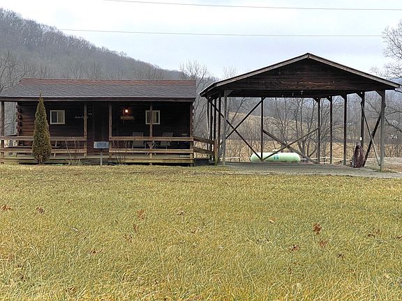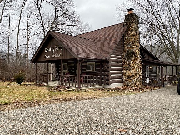 Turn-key rental cabins or your own private retreat in the beautiful rolling hills of Southern Ohio! These three cabins sit on 7+ acres in Pike State Forest, connecting with 85 acres of state land that is perfect for hunting! These cabins have been both a permanent residency and also have been rented for short-term guests as the business "Knotty Pine Cabins". All of the cabins have newer heating units! The original and largest of the cabins offers a large stone fireplace, full kitchen, loft, washer/dryer hookup, shelter house, and a fishing pond that has been stocked with largemouth bass, catfish, and bluegill. The two smaller cabins each offer a kitchenette and covered deck. One even offers an attached covered RV hookup with electric, septic, and water!
