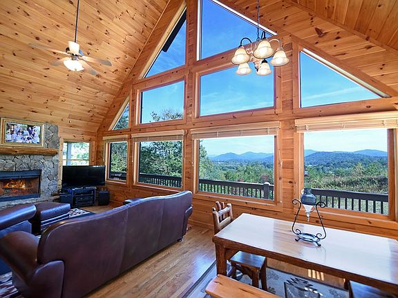 YOUR MOUNTAIN VIEW RETREAT AWAITS..The open floor plan creates an easy flow from great room to the kitchen and dining area.Features include wall of windows to enjoy the views,soaring vaulted T&G ceilings,hardwood floors and fireplace to snuggle up to on those cool mountain evenings.Spacious kitchen with breakfast bar. Main floor has large master to relax & unwind.Upper level has 2 guest rooms and bath.Finished lower level features family room,full bath,den/office/additional sleeping quarters and access to lower level deck.The covered decks are ideal for entertaining family & friends or just relaxing and take in the views.Enjoy the common area on the Hiwassee where you can fish,kayak and BBQ.