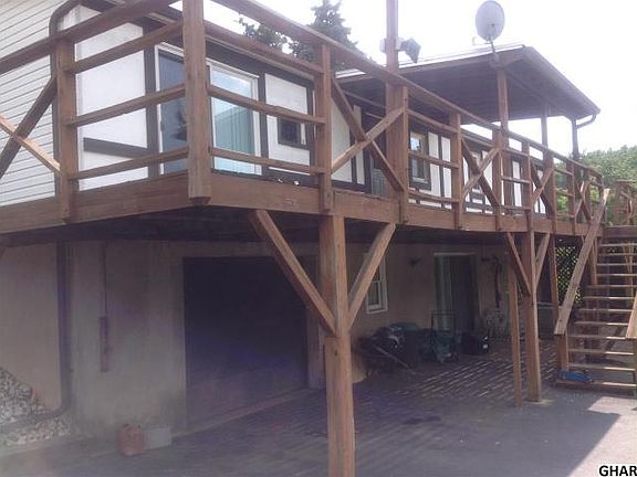 Country setting & views. Enjoy the quiet & solitude from covered front porch & the over sized deck. Only minutes from 283 access for easy commute to HBG, Hershey, or Lanc. This modular home on a full daylight bsmt offers .46 acre lot, generous sized rms & lots of storage. The daylight bsmt is waterproofed, partially finished, & has roughed in plumbing for power room too! Vaulted ceilings, replacement windows, & detached garages