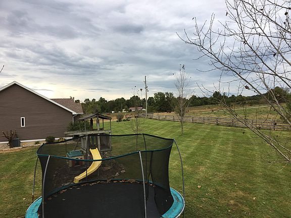 Beautiful craftsman style home with open floor plan, located at the end of a road surrounded by beautiful county views. Property consist of 10.7 acres with a field, wooded areas, and a creek! This home features 1800 sq ft. living space with engineered hardwood floors, tiled backsplash in the kitchen, office/sunroom with lots of windows. House also has unique ceilings in each room. Master bedroom recently remodeled with new flooring and paint. Master bath features a custom curb less walk in tiled shower with Quartz custom double vanity. Two car upstairs and downstairs garage. Also has a beautiful covered back deck, and mature landscaping. Wooded pole barn on the property with water and 100 amp electric. House has central heating and air but also has a central boiler wood burning outdoor stove that heats the house to lower electric bills in the winter.