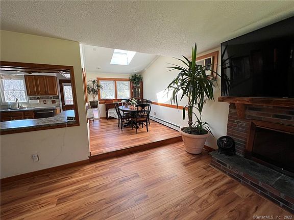 WELCOME HOME! WHEN ENTER YOU WILL HAVE A LARGE DRIVEWAY LINED UP WITH EVERGREEN TREES FOR PRIVACY WHICH CONTINUES WITH A FANCED BACKYARD ON BOTH SIDES OF THE PROPERTY.THIS 1600 SQFT RAISED RANCH IS LOCATED CLOSE TO EVERYTHING: WITHIN FEW MINS YOU ARE ON I-84,SHOPPING CENTER, PARKS, RESTAURANTS,SCHOOL,GYM AND OTHER AMENITIES THAT TOWN OFFERS. HOUSE IS WELL MAINTAINED AND FEATURES A 5 YEARS OLD ROOF (30 YR ARCH. ASPHALT),6 INCH LEAF GUARD GUTTERS INSTALLED 2 YEARS AGO, NEW MAIN ENTRY DOOR, WOOD SHINGLE SIDING WAS REPLACED ABOUT 10 YRS AGO AND WAS STAINED 2 YRS AGO FOR LONG TIME PROTECTION, ENG. WOOD FLOORING ON THE WHOLE MAIN LEVEL. KITCHEN WITH SS APPLIANCES, A TOUCH ON/OFF FAUCET AND BREAKFAST NOOK, NEXT TO DINNING ROOM WITH A SKYLIGHT. MAIN BATHROOM IS UPDATED WITH TILED FLOORS AND WALLS, GOOD SIZE PRIMARY BEDROOM WITH FULL BATH, NICELY DONE WITH PLENTY OF NATURAL LIGHT FROM THE SKYLIGHT. DOWNSTAIRS YOU HAVE ANOTHER 462SQFT LIVING SPACE, WHICH IS EQUIPPED WITH SORROUND SOUND SYSTEM AND A LARGE TV(STAYS WITH THE SALE), LAUNDRY ROOM AND HAVE BATH AND 2 CAR GARAGE . THE BACKYARD IS HUGE AND LINED UP BY FENCE AND TREES, A NICE SIZE DECK 20X11 WITH GAS GRILL CONNECTED TO A 100 GALL PROPANE TANK OWNED BY SELLER, A PLAYGROUND, A GAZEBO SET ON BLUESTONE PATIO WITH A LARGE TABLE FOR ENTERTAINING, AS WELL AS A FIREPIT STANDS NEXT TO IT. THERE ARE 3 SHEDS ON THE PROPERTY FOR A LOT OF STORAGE SPACE. **** HIGHEST AND THE BEST OFFERS TO BE SUBMITTED BY 4PM THURSDAY 5/5 2022.