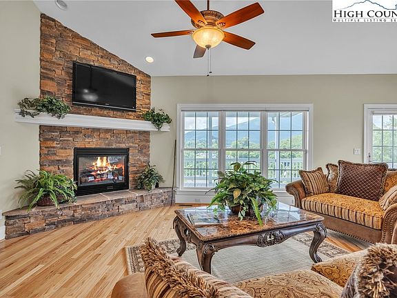 Breathtaking Panoramic Views!! This gorgeous townhome sits on an elevated ridge overlooking the beautiful Jefferson Landing community, multiple golf holes with Mt. Jefferson State Park in the backdrop. The open floor plan design features high ceilings, lovely hardwood floors, natural lighting and a wonderful set up for entertaining with the kitchen centralized between the dining and great room spaces. The large kitchen offers tremendous cabinet and counter space, solid-surface countertops and stainless appliances. The great room has a cozy, stone fireplace and access to the top rear deck. The master suite features large walk-in closet, access to the rear deck, huge bath with double sinks, soaking tub and walk-in tiled shower. The lower level includes two guest suites each with a full bath, a spacious family room with 2nd fireplace and full rear deck to relax and take in the views. With all these desirable attributes, this property would make a wonderful full-time or 2nd home residence. Come see today! Jefferson Landing, a gated golf community, features a magnificent 18 hole golf course. Additional amenities associated with Club Membership include access to the clubhouse, swimming pool with dining/ bar area offering tasty food & drink options, well equipped fitness center, pickleball /tennis courts and Riverside Park, which features a covered pavilion adjoining the New River. Himalayan style putting course & a total of seven par 3 practice holes w/ bar & food options available. There is a $1000 Capital Improvement fee pd to the JL POA, by the buyer at closing.