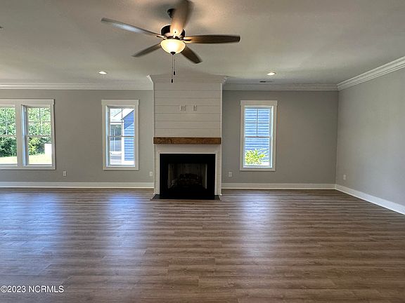 Welcome home to the completed Hatteras floor plan by Holbrook Homes, located in the coastal community of Summerhouse on Everett Bay. With 3159 square feet of living space and a main floor owner suite, this remarkable home is sure to be at the top of your list. Featuring large, spacious rooms, and an open airy living area that is perfectly suited to entertain. The living room features high ceilings, a gas fireplace with slate surround, a floating mantle, and an eye-catching shiplap accent. Flowing into the kitchen, you'll find white custom kitchen cabinets, stunning fantasy brown granite, white tile backsplash, stainless steel appliances, a pantry, and more! The main floor also features the spacious owner suite with walk-in closet and beautifully tiled walk-in shower, and a second bedroom with a private bathroom. As you make your way to the second floor you'll find two additional bedrooms, a flex space, a full bathroom, and a linen closet. Throughout the home, you'll find finishes such as crown molding, LVP and tile flooring, recessed lighting, and so many more textural finishes, for the finest coastal living. If you enjoy the outdoors, you're sure to enjoy countless moments on the back deck, along with all the various amenities offered within the community. Summerhouse on Everett Bay features unsurpassed community amenities, including an exquisite clubhouse, resort-style pool, community gym, fire pits, playground, tennis courts, walking trails, pavilions, boat storage, boat launch, and day docks with ICWW access. This is truly an opportunity to own your own piece of coastal paradise! Schedule your tour today!
