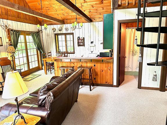 Brand new renovation, this warm and inviting 2 bedroom, single bath home is absolutely ready to welcome its new owners! The cozy open floor plan embraces you right away. The main entry leads you into the spacious living room, and charming dining area and kitchen with breakfast bar. Two roomy bedrooms and the full bath complete the main floor layout. The spiral staircase leads you up to the lofted bedroom overlooking the main living area offering views from above of the timber frame beams, cathedral ceiling and the gorgeous stone fireplace. This beautifully maintained home is located in the heart of the quiet Sherwood Forest community, just 5 minutes from downtown Londonderry, and easy access to Stratton, Magic, Bromley and Okemo. Summer recreation is nearby at Lowell Lake or Gale Meadow Pond, and your own private hiking trails are right out your back door! Open House Saturday, 6/29, 2-4pm, and Sunday 6/30 10am-noon! This will not last!