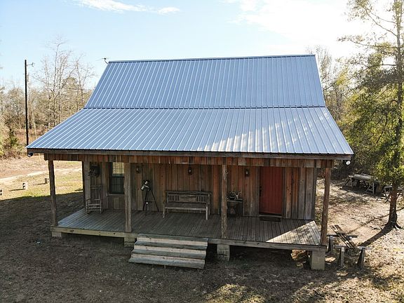 Must see, must have, this 10 acre feature packed property! The site is 10 acres of natural hardwoods located between Sugar Creek, Turnpike Creek, and Gum Swamp Creek, a natural deer crossing. No need for a large acreage, hunt from front porch and rear deck, home is locatednear the center of the property. Site is well drained and secluded, but has good access. Much planning, thought, and determination went into the construction of the custom cabin. Exterior walls are aged cypress, floors are custom milled and finished pine, interior walls-vaulted ceilings are custom milled T&G pine, amazing woods! No breathing problems in this home, flooring all tile and pine, no carpet. Front porch and rear deck have commanding views. Listen to the rain on the metal roof! Unique lighting fixtures and ceiling fans. Great floor plan for family interaction! Free standing gas heater with logs, no toting in of firewood. Central heating and air. Tankless water heater, and more!!!!!