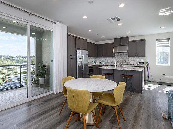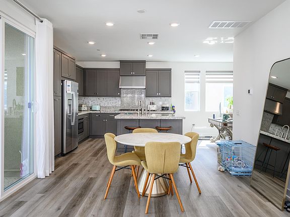 398 Trevinca is a three story 2,020 square foot condo with 4 bedrooms and 3.5 bathrooms. A premium corner lot facing a park with rare privacy & panoramic tree-lined views. Charming curb appeal and inviting private courtyard welcome guests to this trendy multi-level townhome. Natural light pours through windows in this spectacular open layout where soaring 9-ft ceilings, elegant window coverings, stunning luxury vinyl plank flooring & flexible living spaces include a main floor bedroom suite offering convenience & privacy. Designed for the modern great room offers spectacular views that create an inviting gathering place for comfortable living. Chef-inspired kitchen presents contemporary shaker cabinetry, classic subway backsplash, huge walk-in pantry & generous island overlooking casually elegant dining & expansive family room with a dramatic wall of sliding glass doors towards the deck. Peacefully tucked away on the top floor are three additional bedrooms, both enjoy upgraded ensuite baths. The primary suite is bathed in natural light and will take your breath away with more spectacular views, dual walk-in closets & large spa-like bath. Convenient full-size laundry & linen storage complete this level. The vibrant community of Serrano Summit offers the best of everything w/ pickleball & basketball courts, multiple parks, playgrounds, bbq areas and a luxurious clubhouse with resort-style pool & spa. owner pay for HOA only